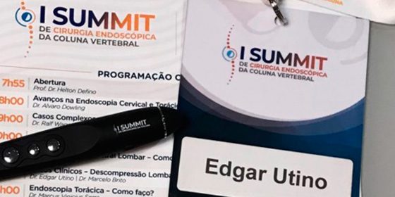 Nos dias 24, 25 e 26 de outubro de 2019, o Dr. Edgar Utino participou do “I Summit de Cirurgia Endoscópica da Coluna Vertebral”, realizado no Hotel JP – Complexo FMRP/USP na cidade de Ribeirão Preto, SP. Dentre as programações, participou como palestrante no módulo “Médicos com Foco em Endoscopia de Coluna” em mesa redonda e discussões de casos clínicos sobre temas relacionados à técnica da Cirurgia Endoscópica da Coluna; atuou no módulo “Cadaverlab” em prática com monitores e como palestrante sobre o tema descompressão lombar; e ministrou aula no módulo focado a “Instrumentadores Cirúrgicos” sobre tipos de acesso na cirurgia endoscópica da coluna. Nestes três dias de eventos simultâneos, estiveram presentes os principais especialistas do país em cirurgia da coluna vertebral e profissionais de diversas áreas, uma ótima oportunidade para se atualizar com os melhores do mercado.